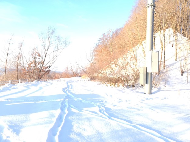 ▼やっと除雪されているところまで来た。スノーシューを脱ぐ。