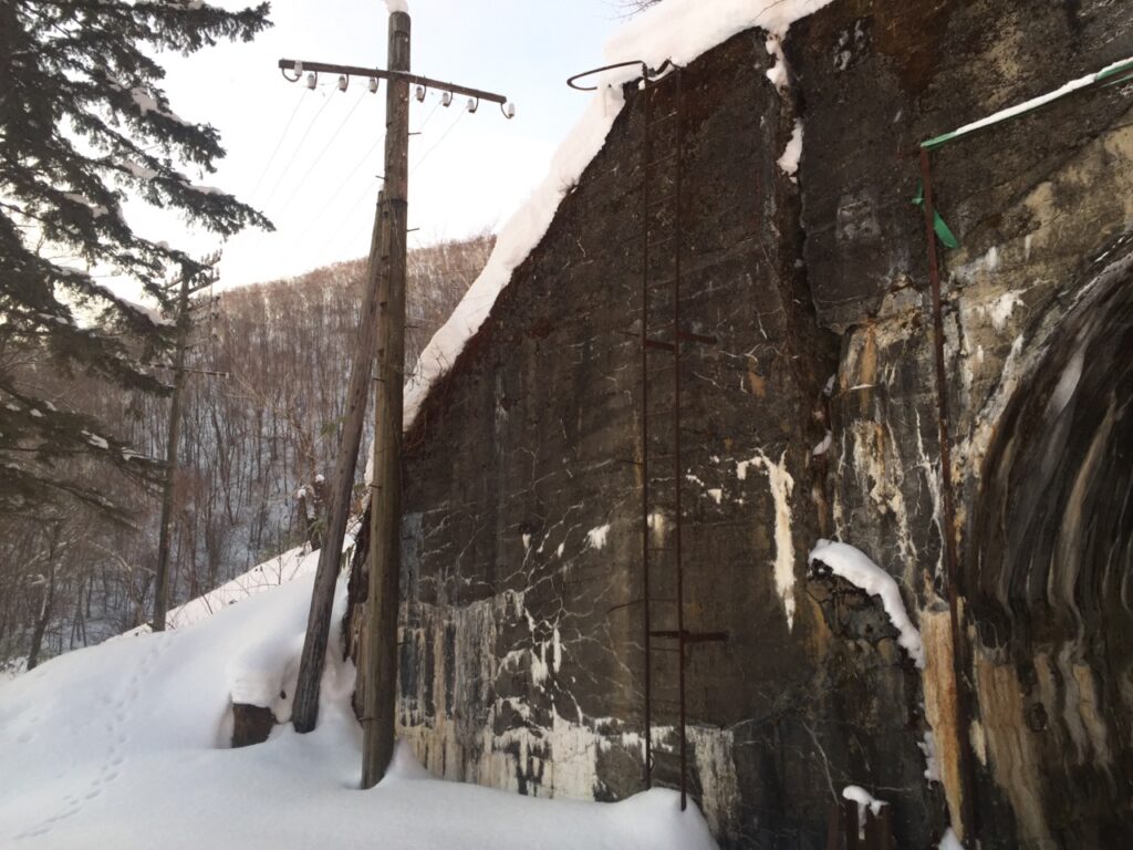 ▼被災跡と新内隧道(新得側坑口)