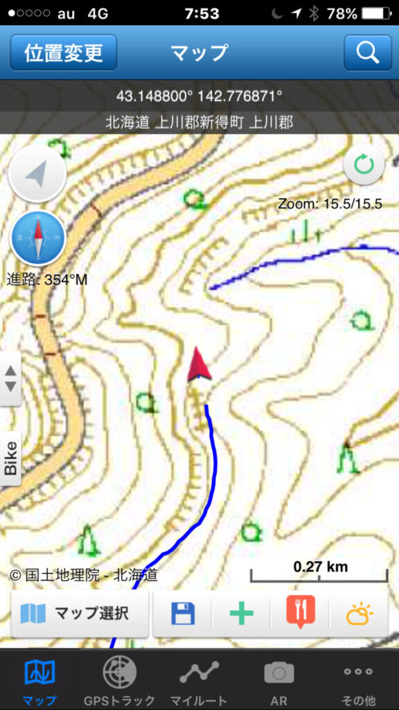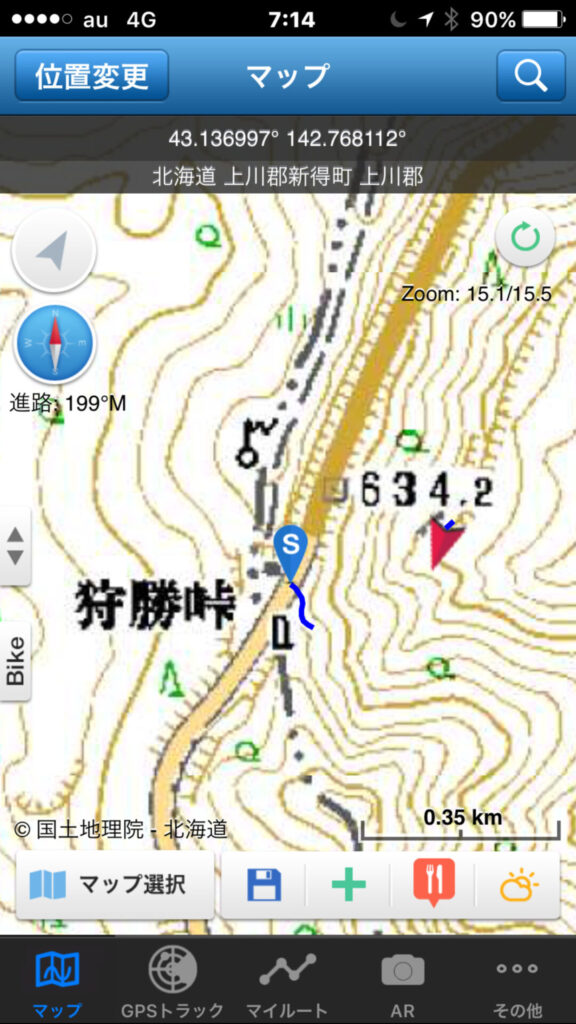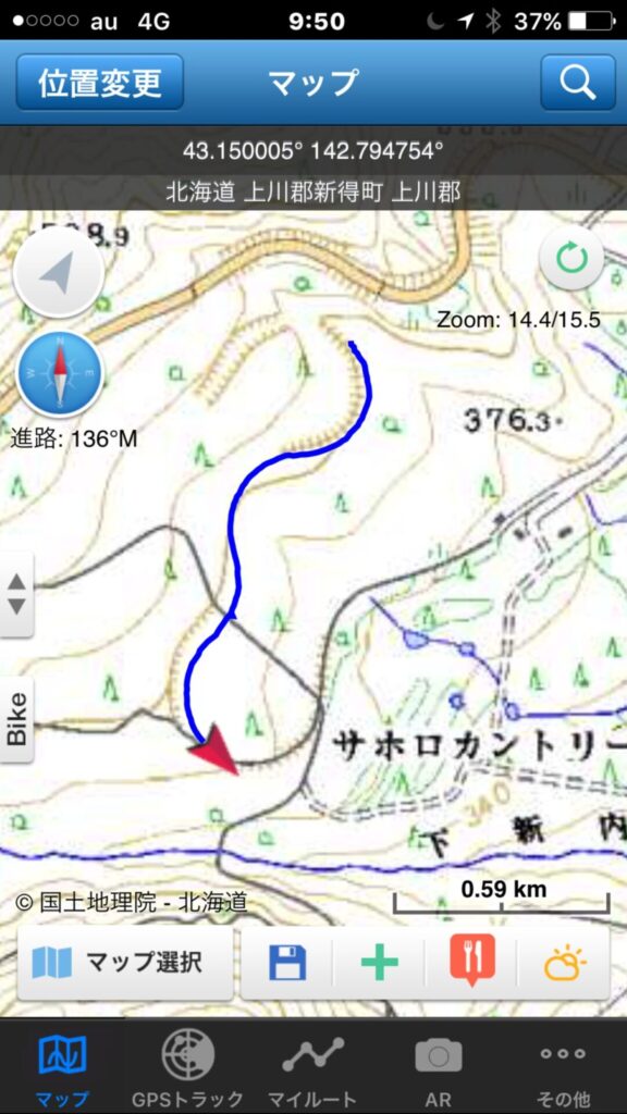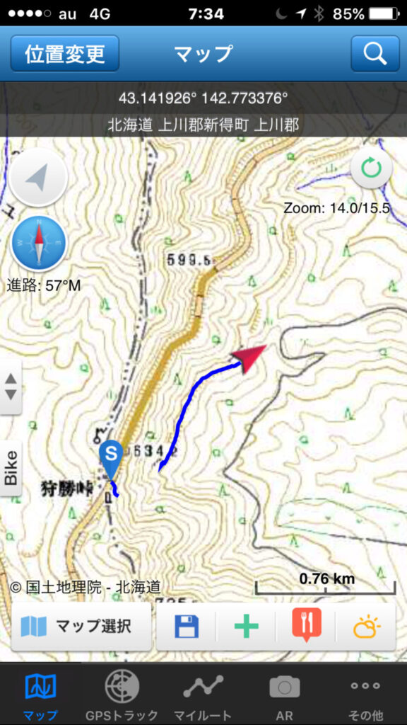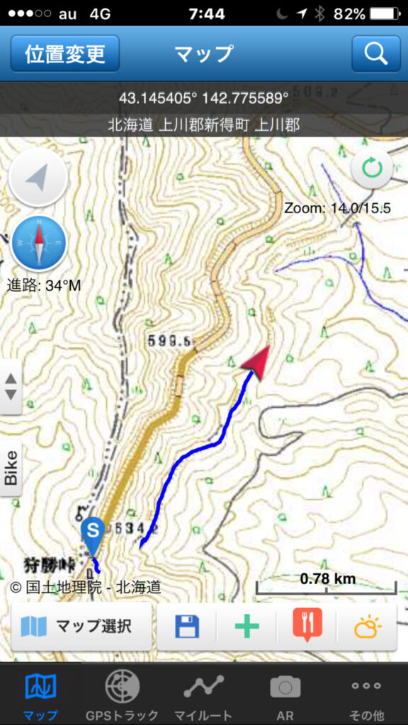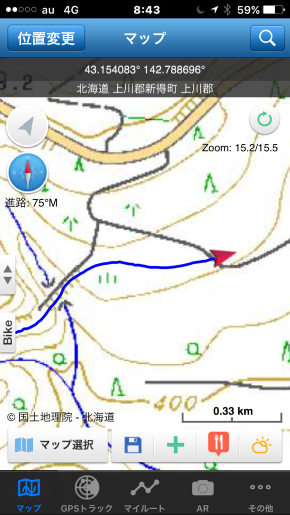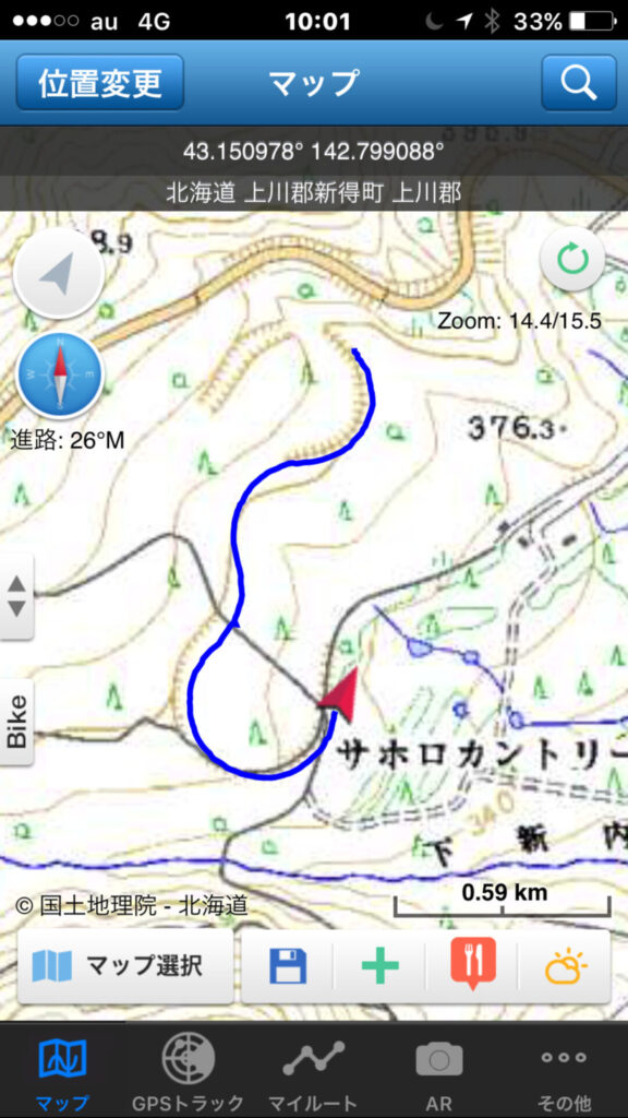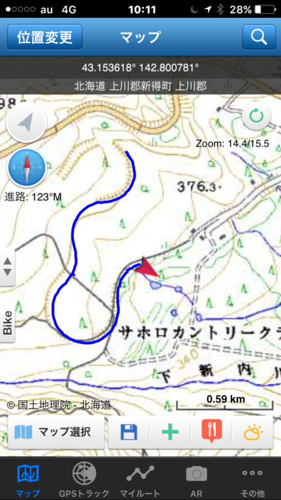 ▼軌跡図その3:佐幌岳上空から