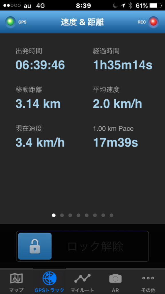 ▼位置:寒さのためデータ欠落。写真を頻繁に撮るためスマホが冷えてしまうためだ。筋肉さんのデータをもらうから大丈夫だが。