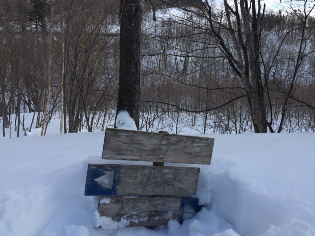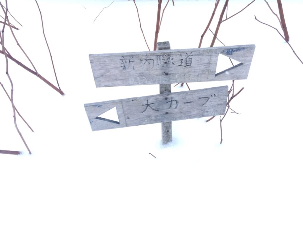 ▼十字路になっている。最短距離で新内隧道へ行きたいならば、ここを右へ登った国道38号の6合目からアクセスすると良い。