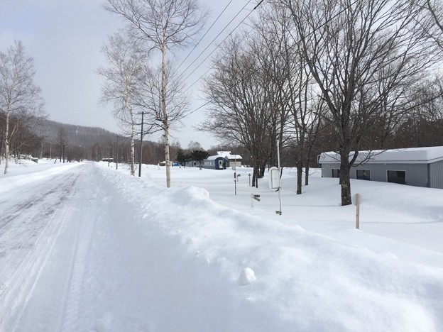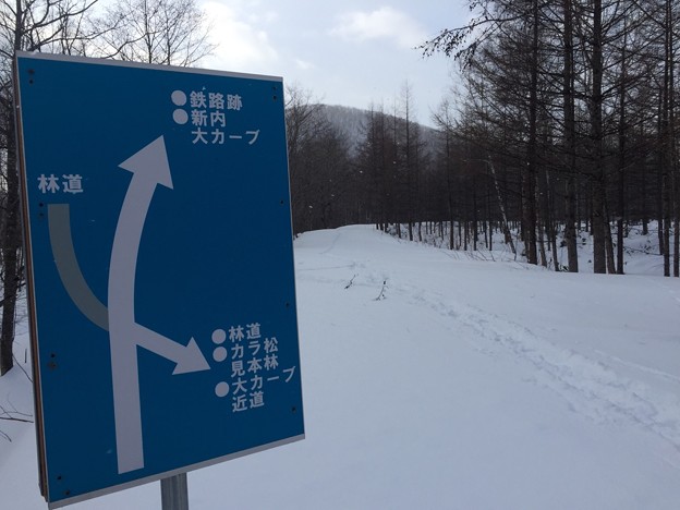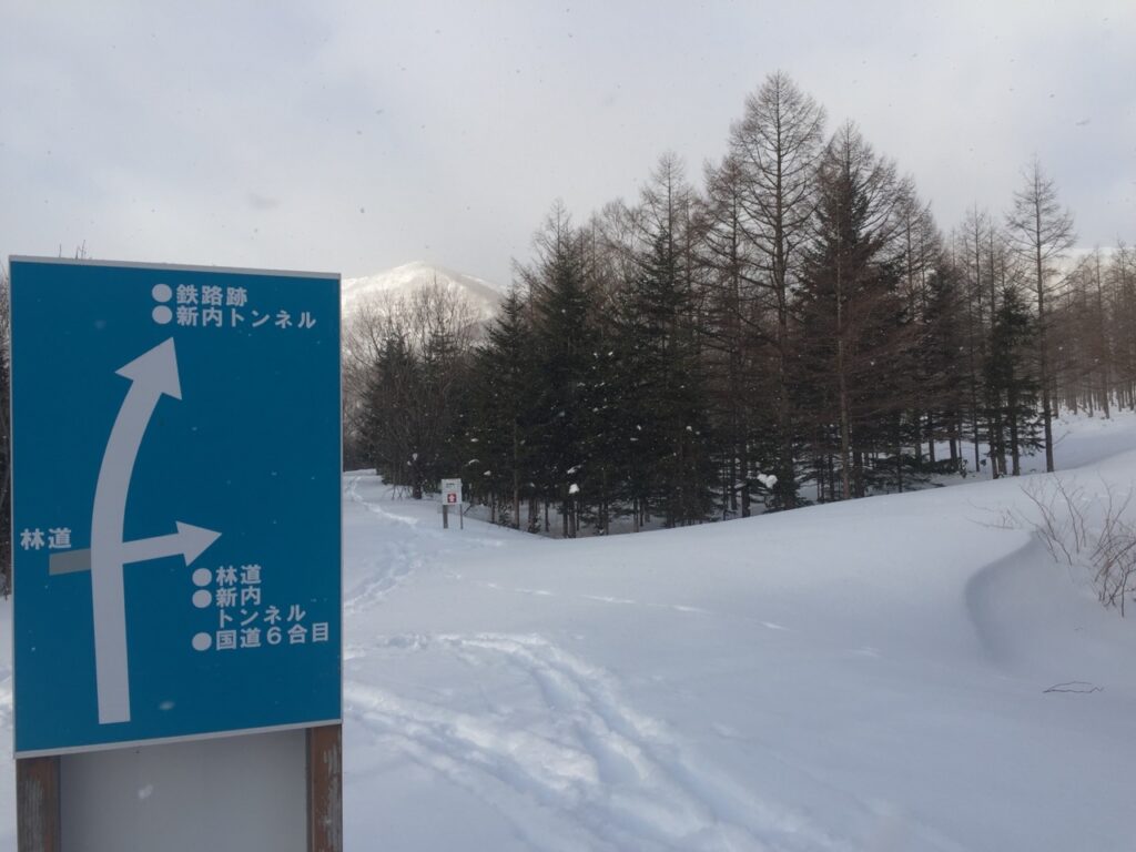 ▼廃線跡の散策路は整備されているようだ。雪の下で見えないが。