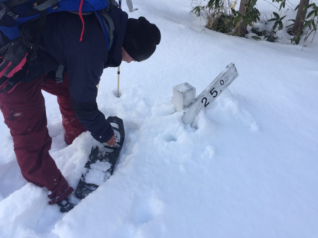 ▼筋肉さんのスノーシュー右足が脱げた。その後も何度も脱げた。このMSRのラチェット方式のベルトは、脱着は楽なのだが…調子が悪いようだ。かつ、筋肉さんの股関節も違和感があるそうだ。まあ、スノーシューを始めたら誰もが体験すると思うが(‘_’)
