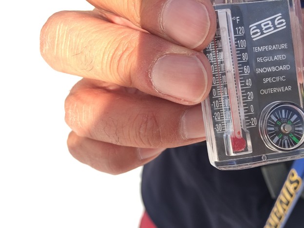 ▼陽当たりが良いせいか、ここでは気温は5度もある。