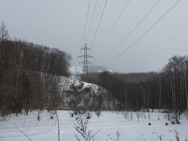 ▼高圧線下通過。国道38号が寄り添ってきた。ゴールは近い。