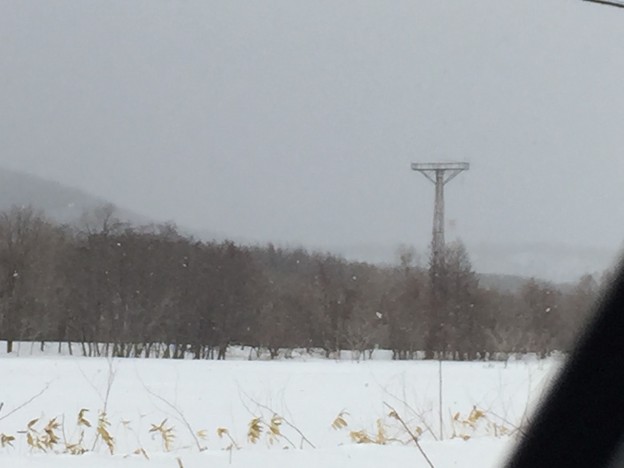 ▼車中から:旧国鉄時代に実験線として使用されていた名残のデータ通信用の無線鉄塔