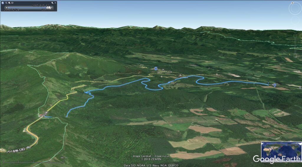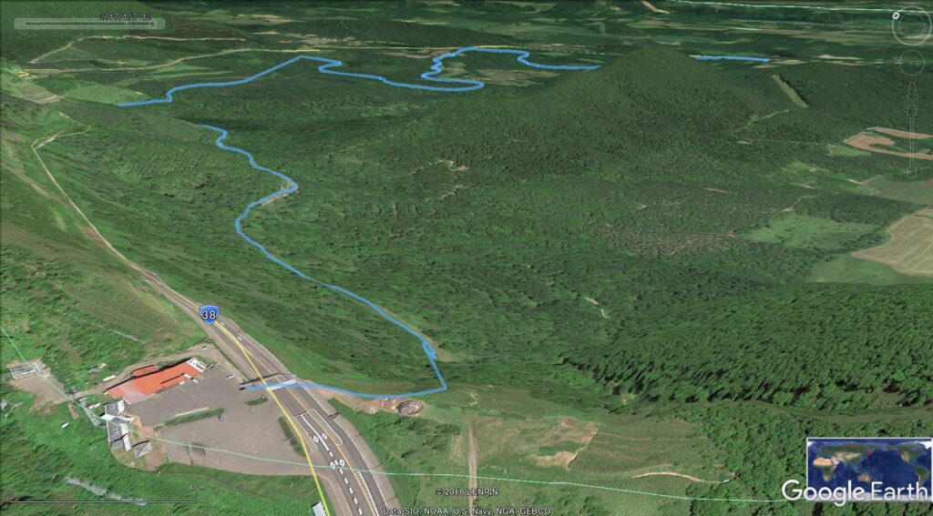 ▼軌跡図その2:狩勝峠上空から
