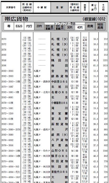 ▼帯広貨物駅着の貨物の時刻は札幌貨物ターミナルの時刻表らしきものから、帯広着の1時間前に増田山を通過と想定。