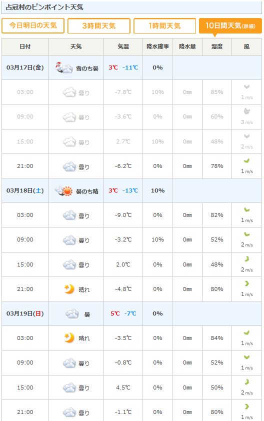 上川側(占冠村)と十勝側(新得町)両方の天気を確認