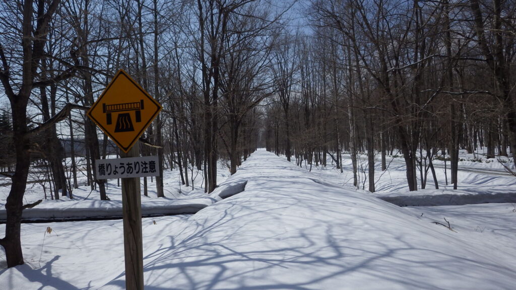 ▼橋梁が数か所あるが、防護柵は無いので注意。