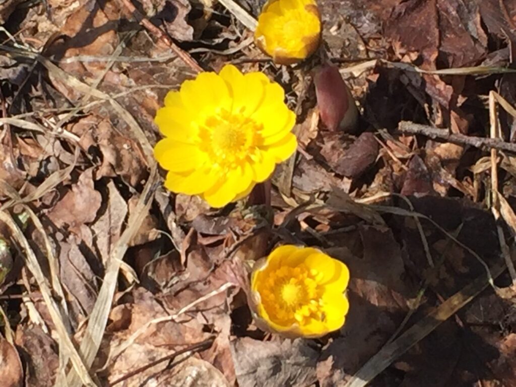▼雪が少なくなってきた。スノーシューを脱ぐ。