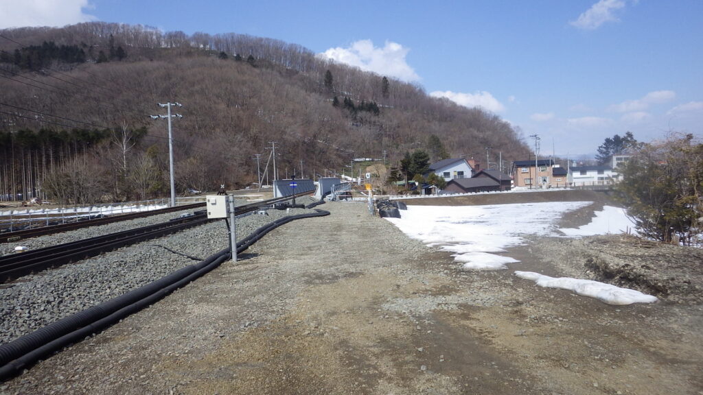 ▼ラーメンロッキー新内店裏に廃線跡がある。