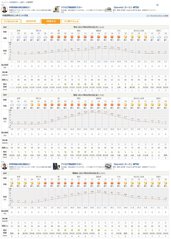 ▼中標津の天気をチェック 朝方寒そうだが、日中は歩き易い気温のようだ。
