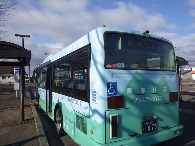 ▼JR標茶駅に6:10に到着し、駅前で6:15発の阿寒バスに乗継ぐ