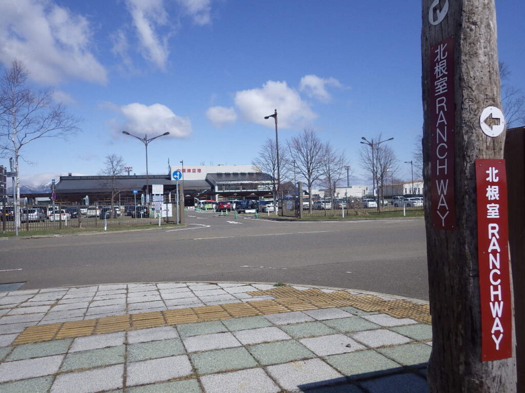 ▼中標津バスターミナルに到着した。ランチウエイ起点ポストを探す。わかりにくい。バスで来た人はこれを知らずにスタートしているかも。位置はバスターミナルの東側。横にゴミ箱があった。