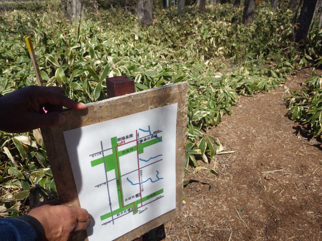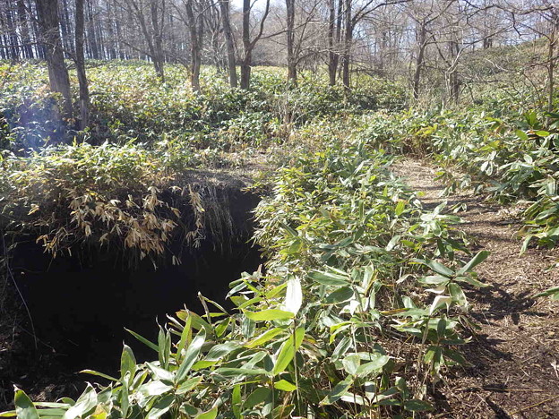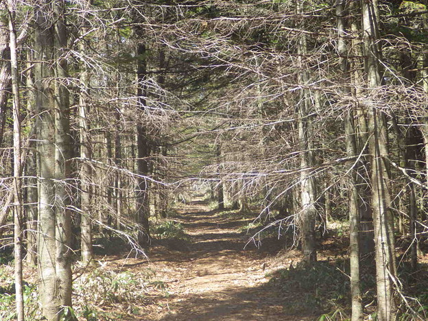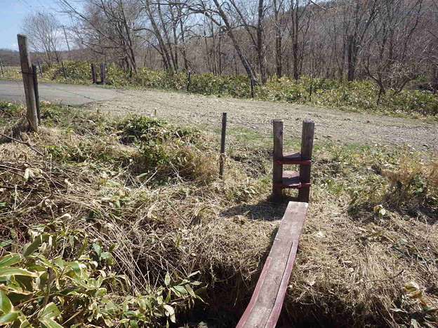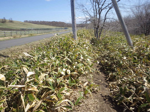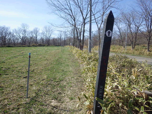 ▼ここから砂利道わきの草地の縁(へり)を歩く。