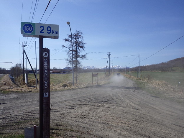 ▼道道150にぶつかった。暑いのでタイツを脱ぐ。