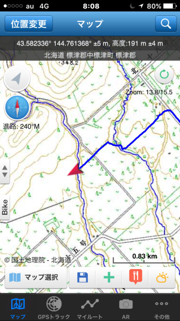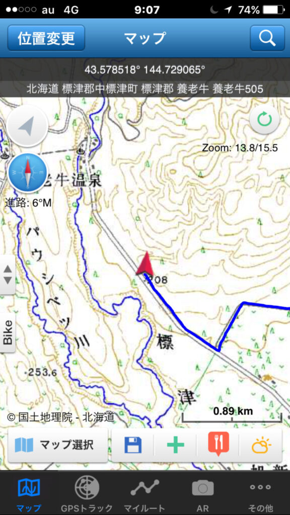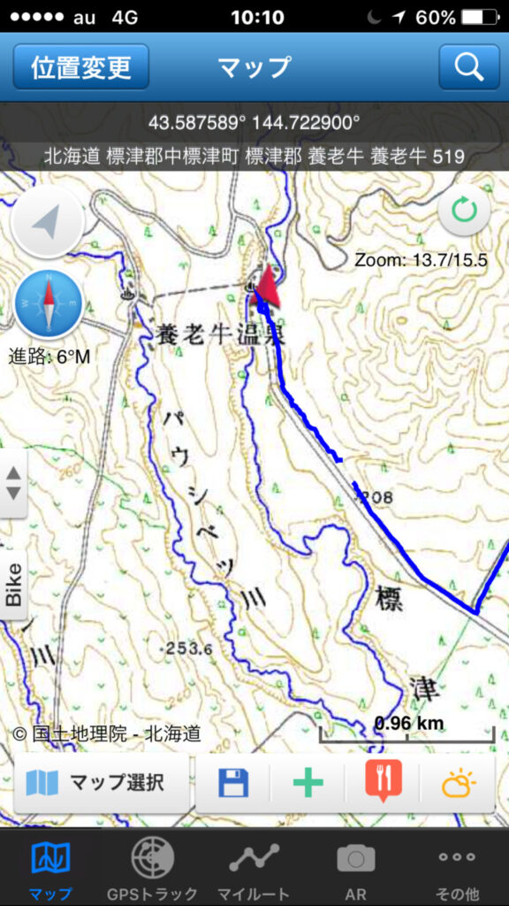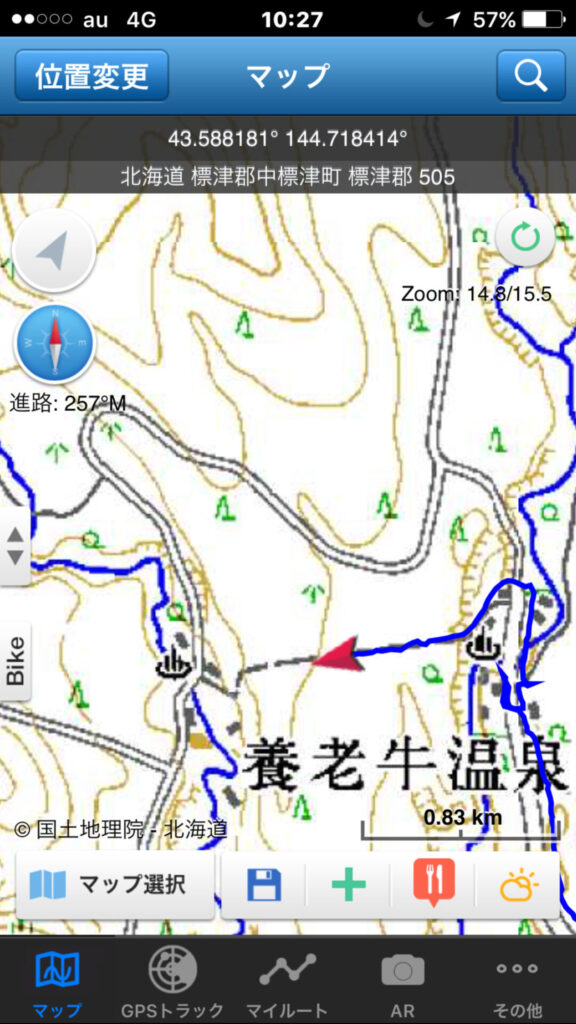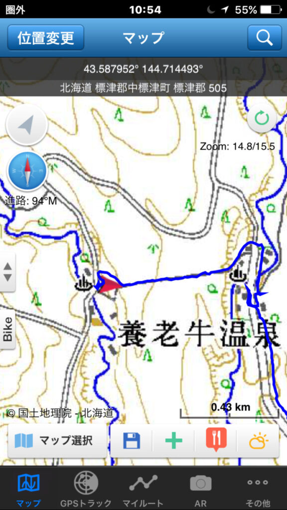▼軌跡図:STAGE-3 佐伯牧場~養老牛温泉