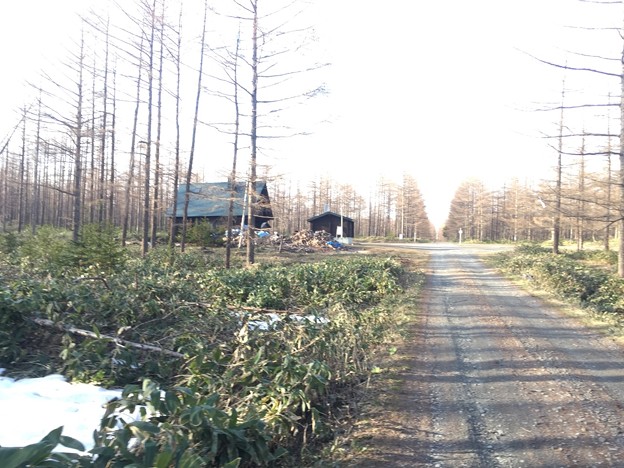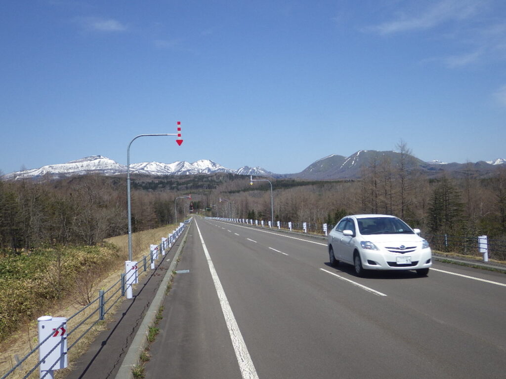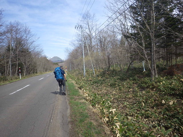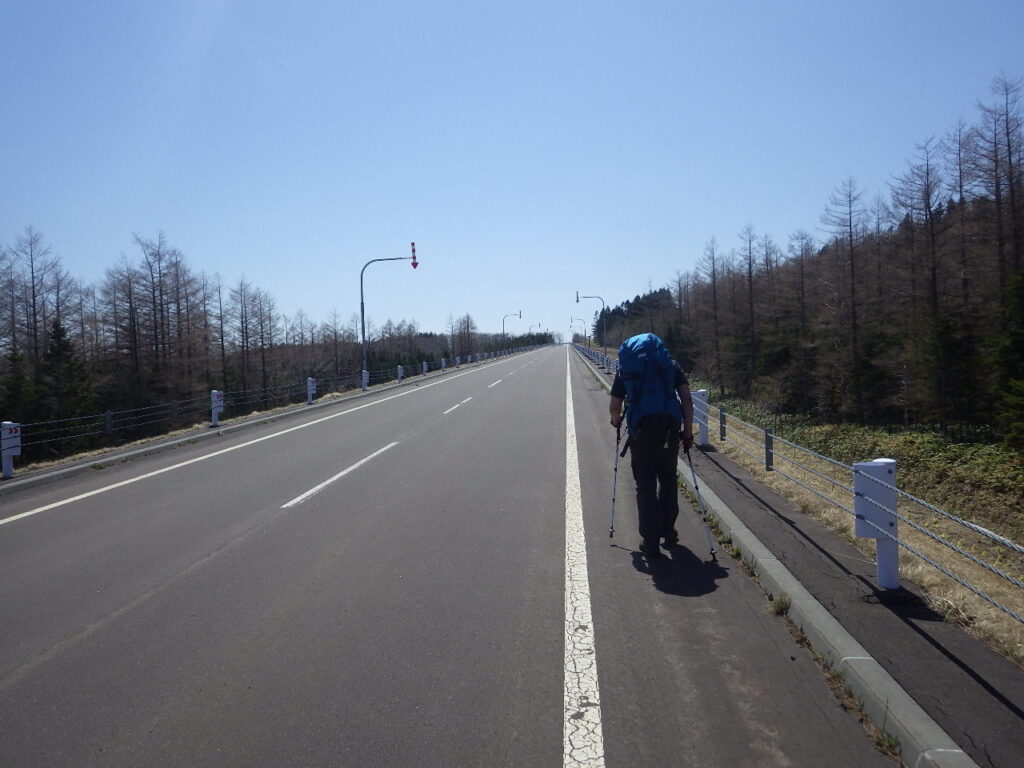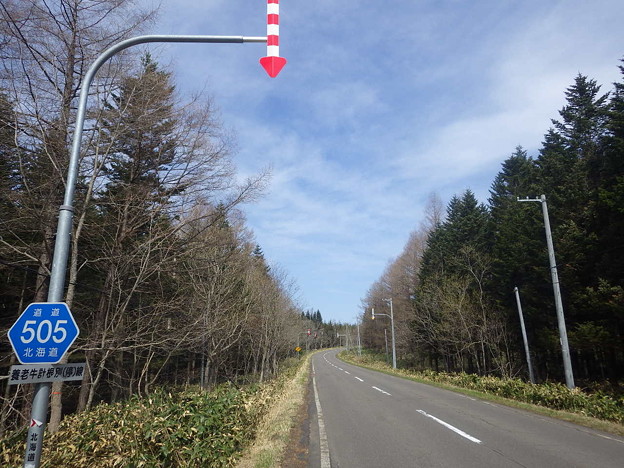 ▼道道505に出た。路側を歩き養老牛温泉を目指す。