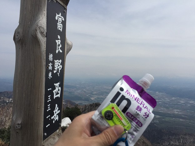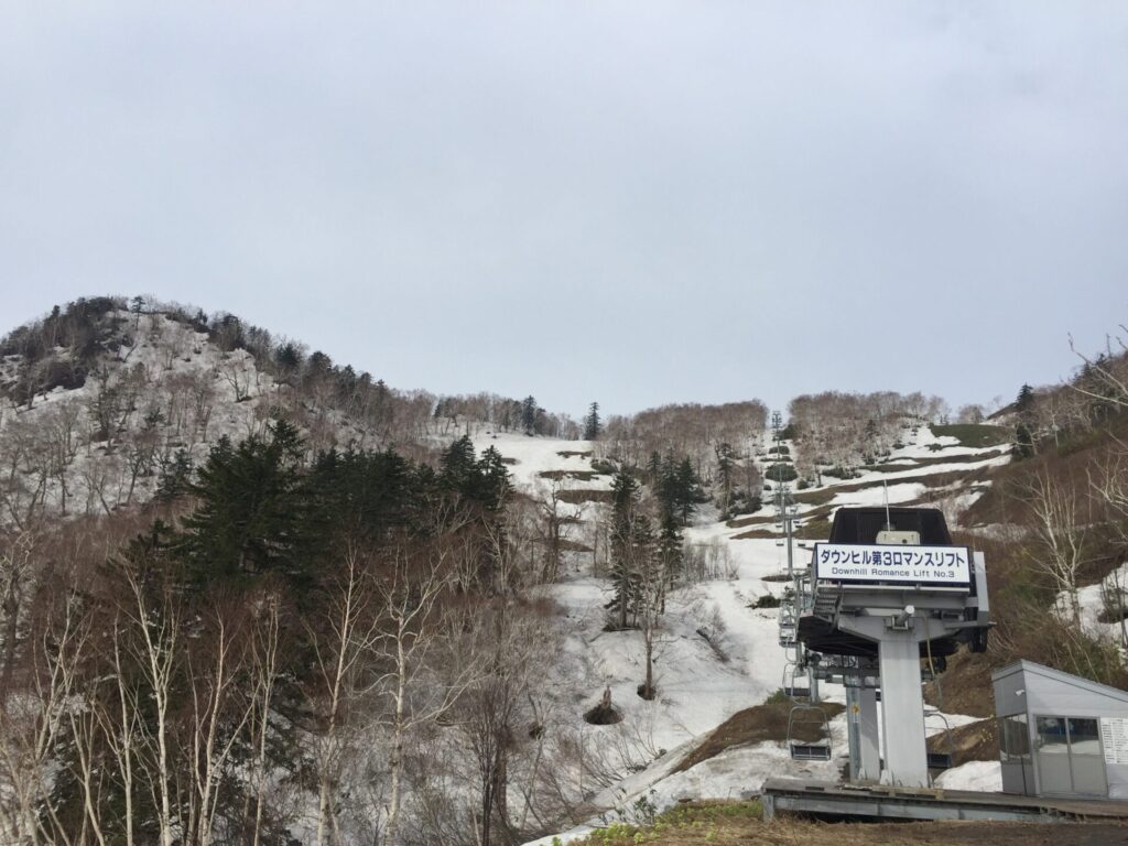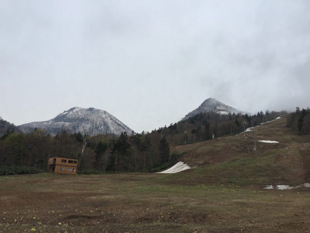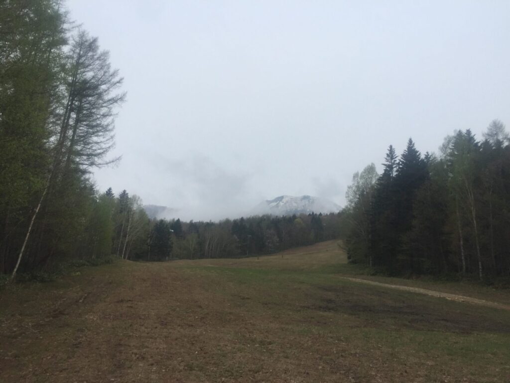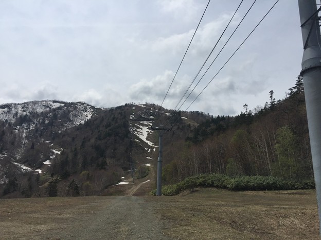 ▼左が富良野西岳のようだ。右のとんがりの方へゲレンデは登っている。