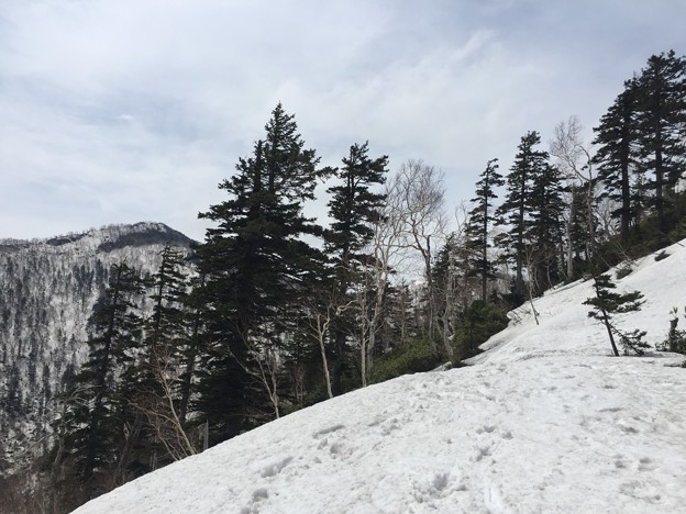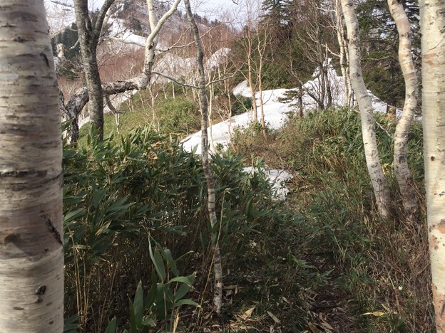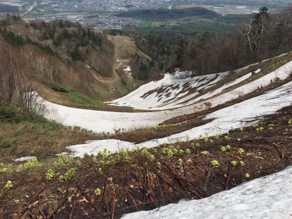 ▼30分下って、もう富良野西岳はあんなに小さくなった。