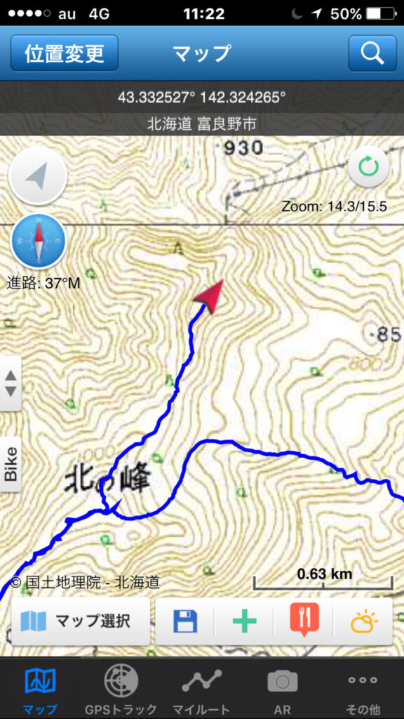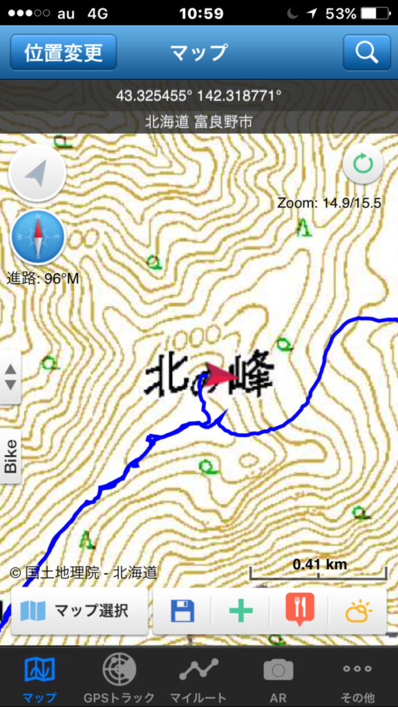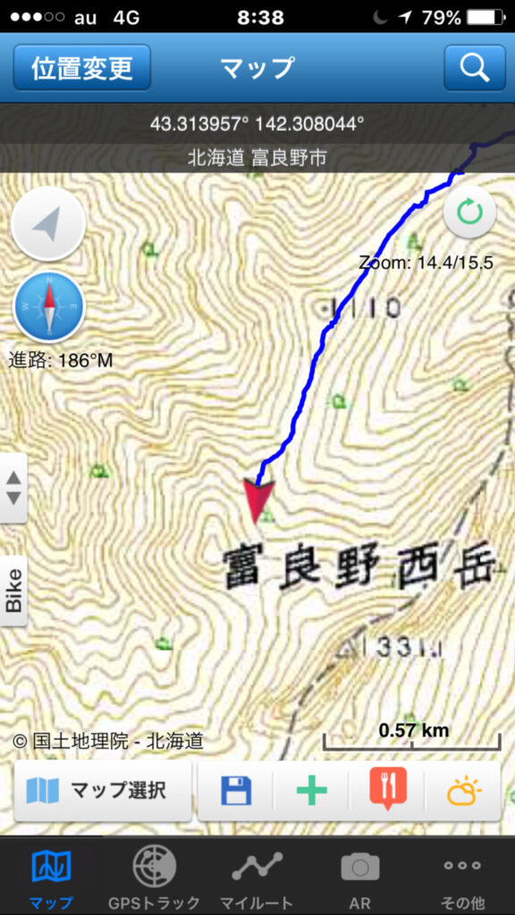 ▼北の峰はここらへんかな。山頂標識というものは存在しないようだ。