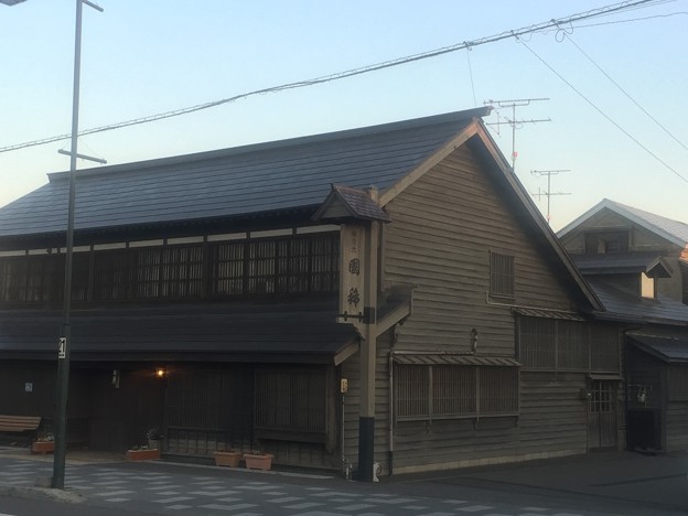 ▼右手が寿司の松倉、左手は旧商家丸一本間家
