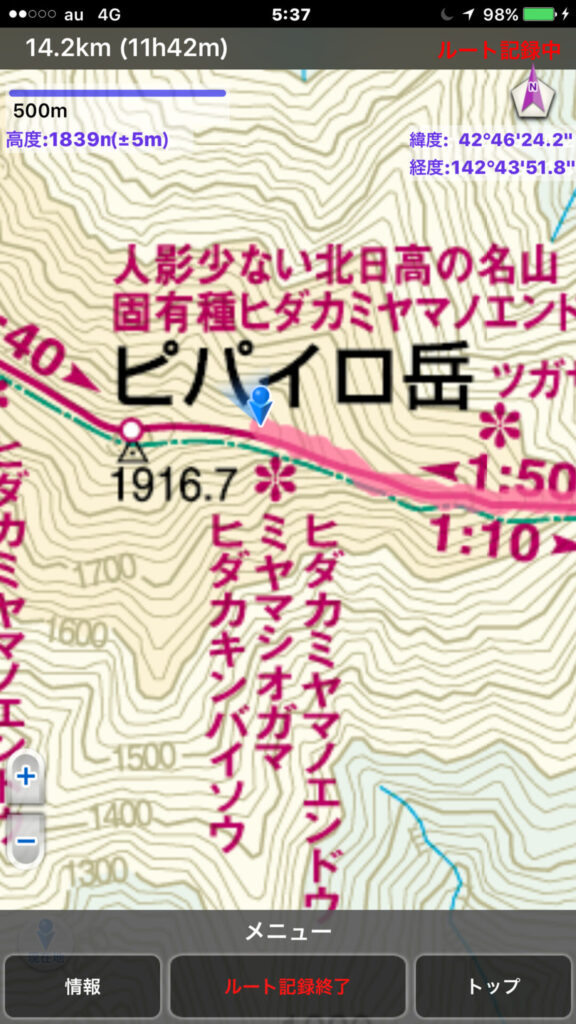 頂上のテント場で見失ったため、進んでよいのか1時間