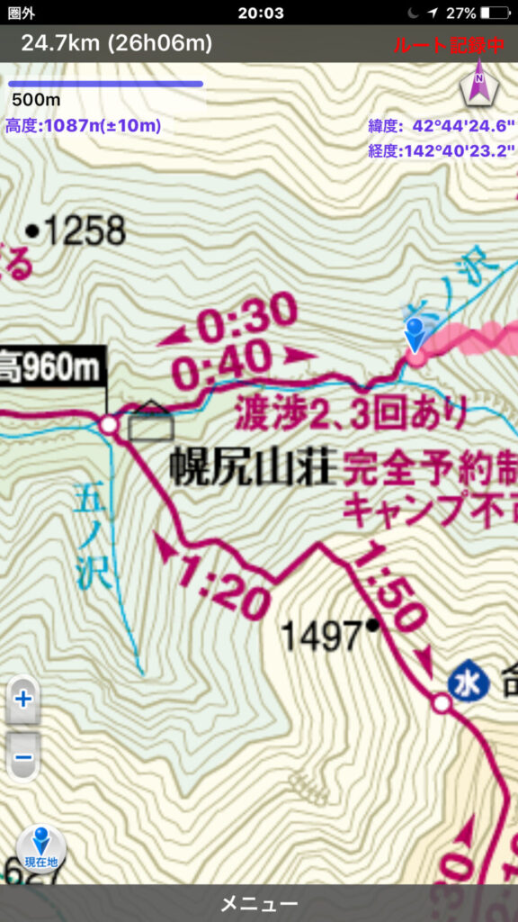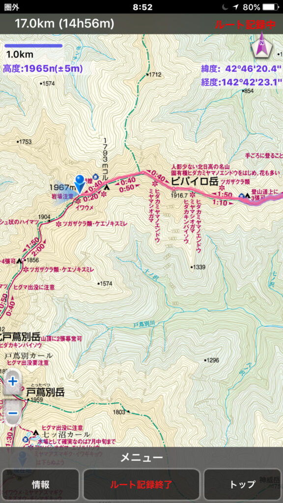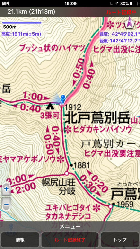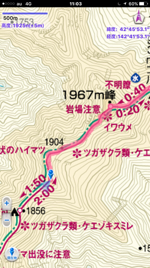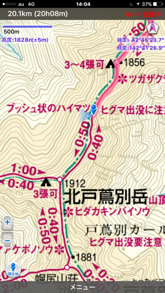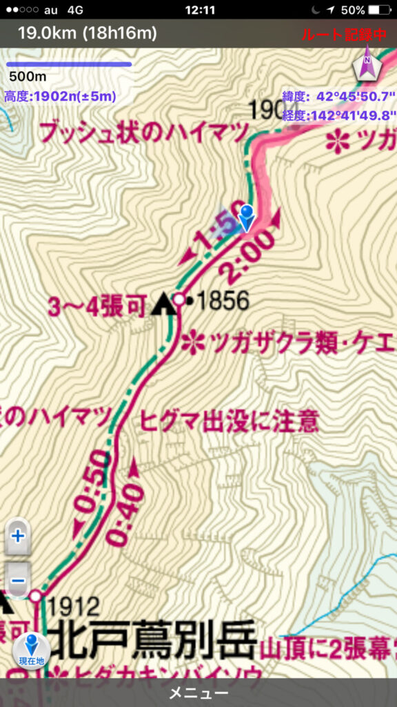 ▼クマの動き:我々が進みたい登山道上を悠々と闊歩!