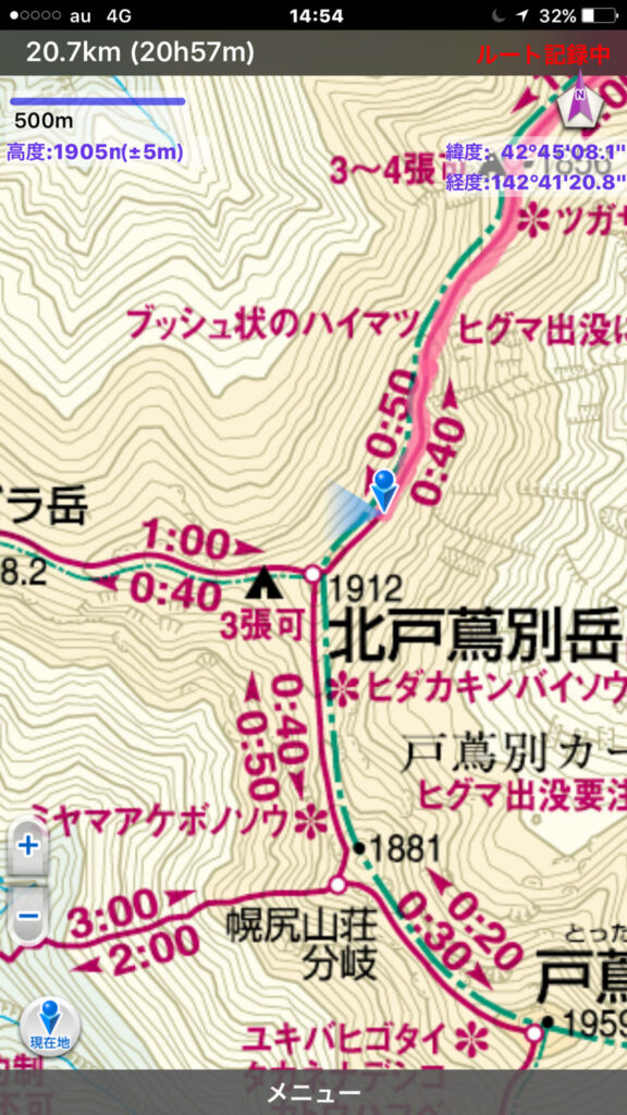 「日高山脈横断」3/4~登山道上に黄金色の熊発見!3Mはある~