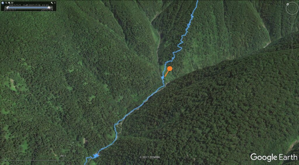 ▼山と高原地図にある1793コルのテント場。ただし水はどこで取るのか見つけられず。