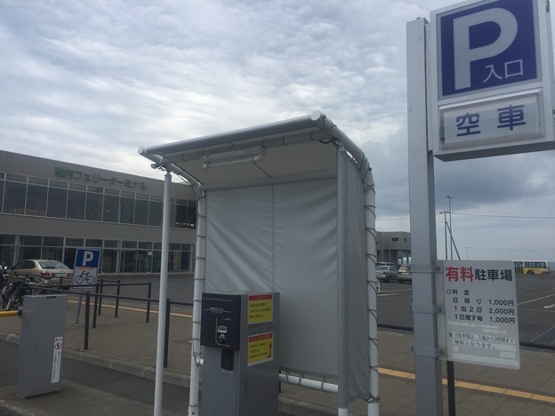 ▼稚内フェリーターミナル着 駐車場は一泊二日で@2000- 道の駅前の駐車場は無料だが…