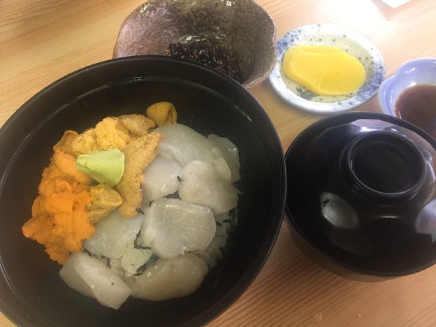 ▼うにホタテ丼@4000- 不衛生極まりない。ラーメンのカスついてた。