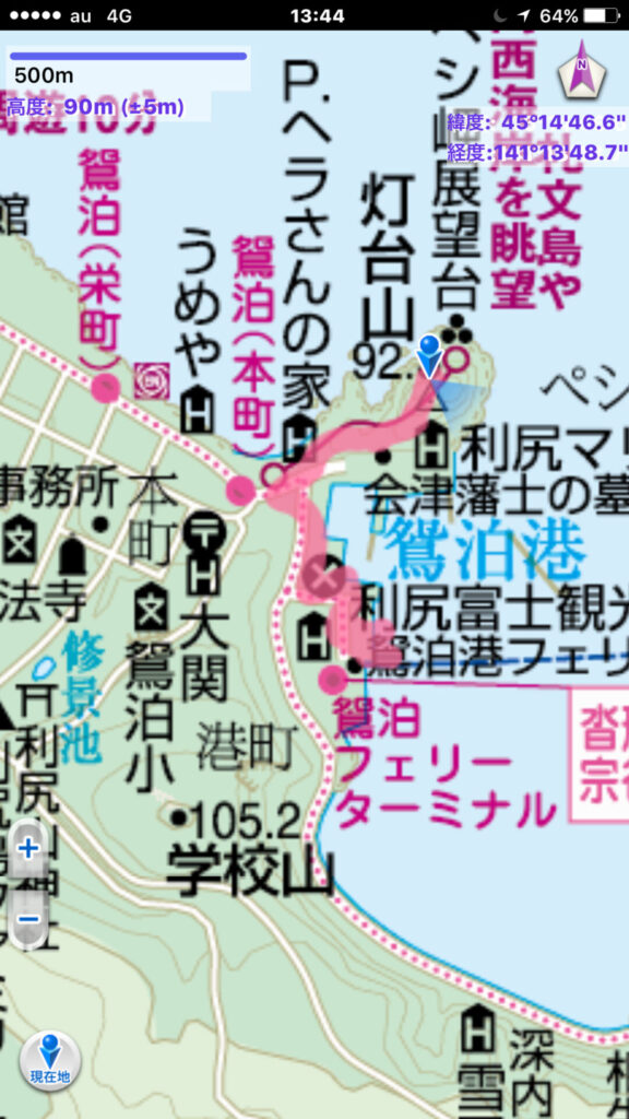 ▼鴛泊燈台に下った。緩いコースはここに来るもの。
