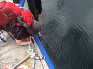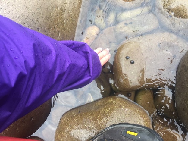 ▼海面にタッチ! 0mから利尻山へ向かう。