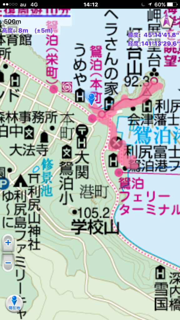 ▼位置:下地マップは無くとも、座標位置は表示してくれる。