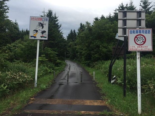 ▼直進すると、北麓(ほくろく)野営場だが、海岸へ向かう。