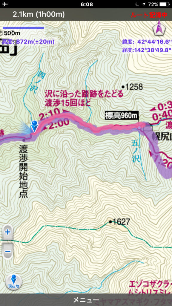 九州からの後期高齢者3人組と色々話す。彼らの持っていた山と高原地図では奥幌尻橋までシャトルバスで行けると表記されていた。最新版のはずだから誤記だなと言っていたが、私の2年前にDLした電子版に誤記は無いのだか…
