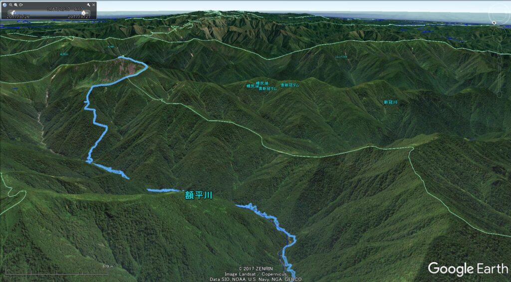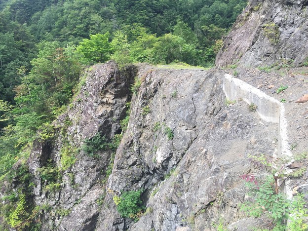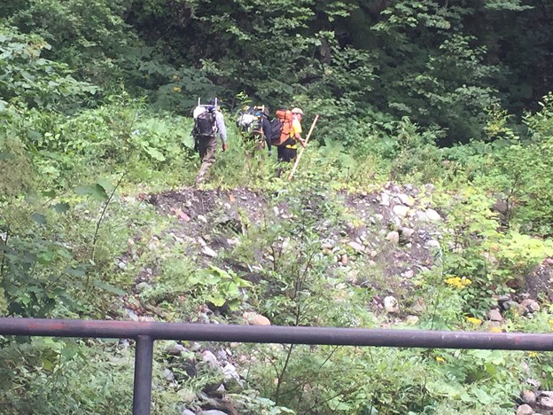 ▼単管足場で渡る個所。渡渉は、あと2回!