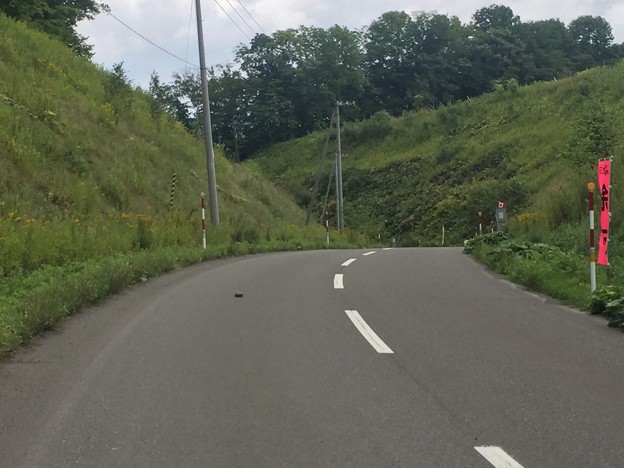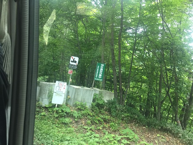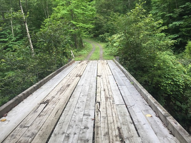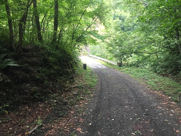 ▼幌振橋、公道ではないので防護柵は無い。角材の地覆のみ。
