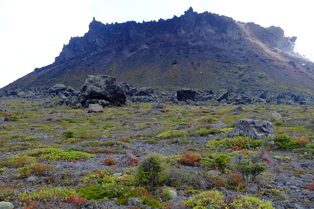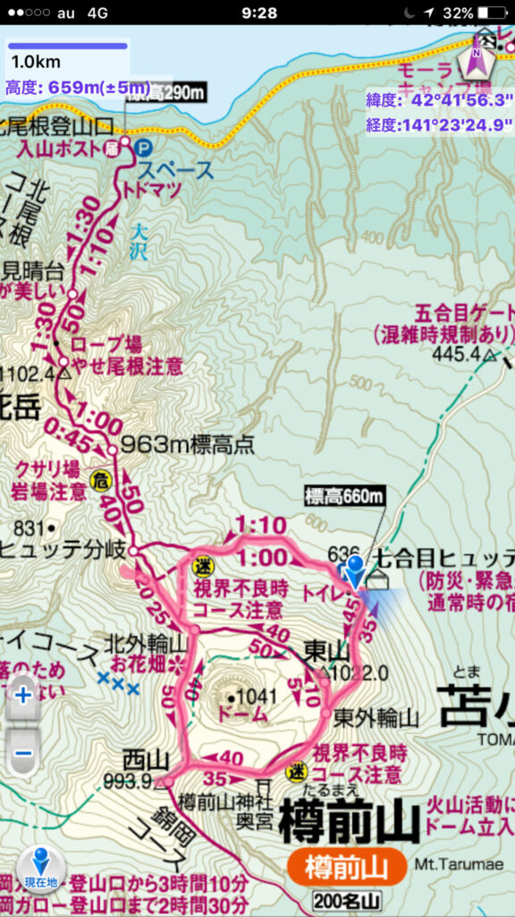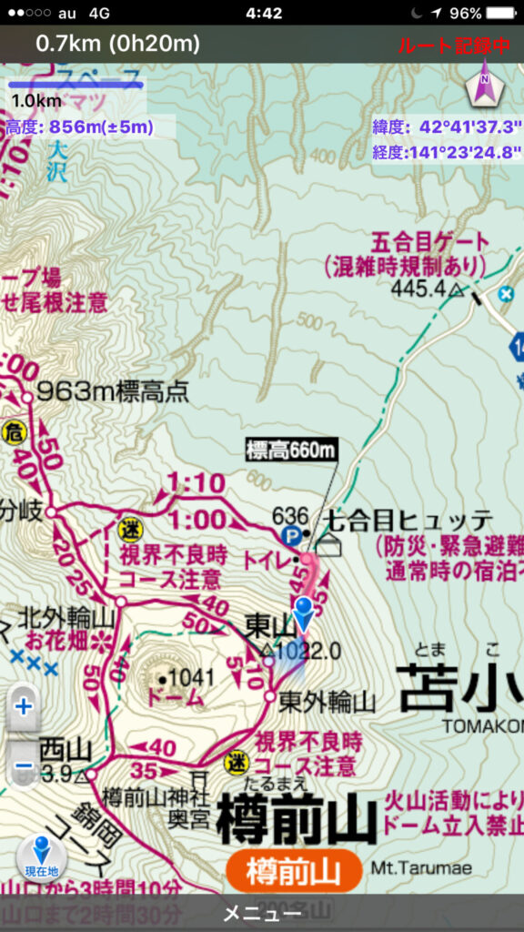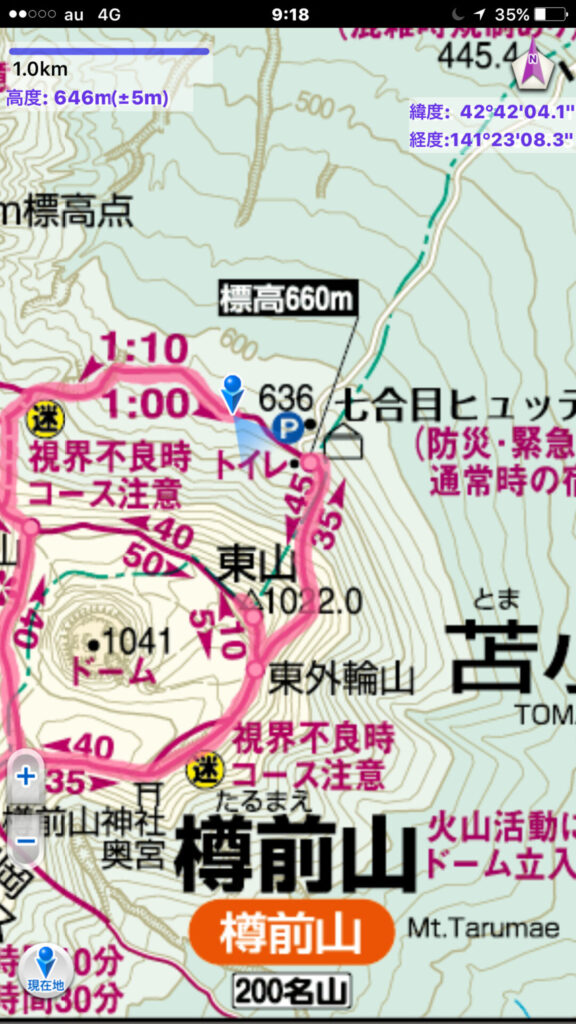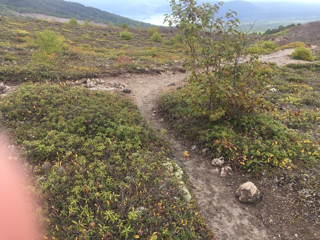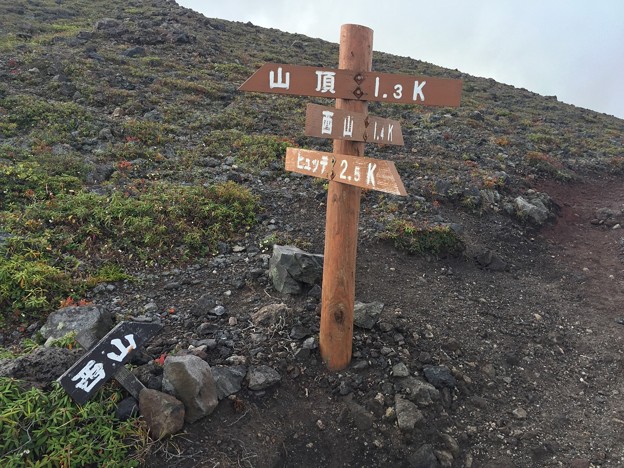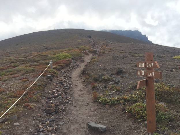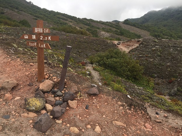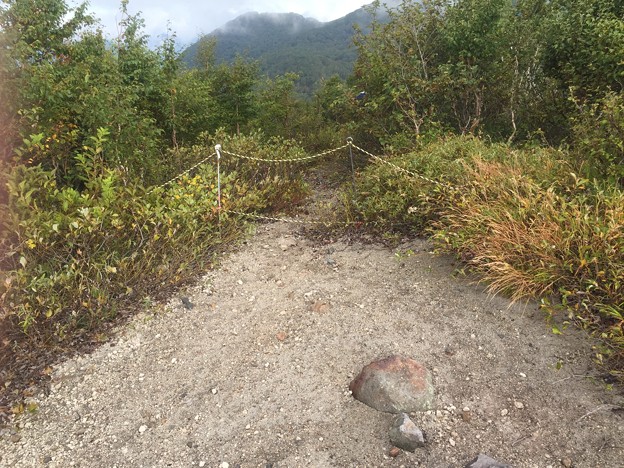 ▼よく見ると「苔の洞門方面立入禁止」とある。ここが、苔の洞門から至るシシャモナイコースの分岐部なのだろう。今は苔の洞門が崩れてたため立ち入り禁止となっている。小学4年生の時に勇払小学校の登山遠足でこのコースで登った。何度か爆竹を鳴らしていたのを記憶している。帰りは7合目から苫小牧市営バス。