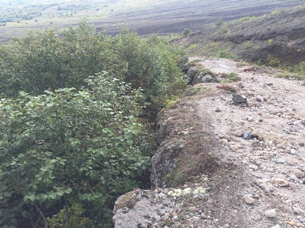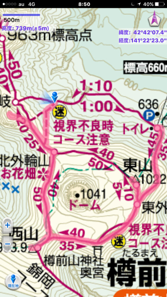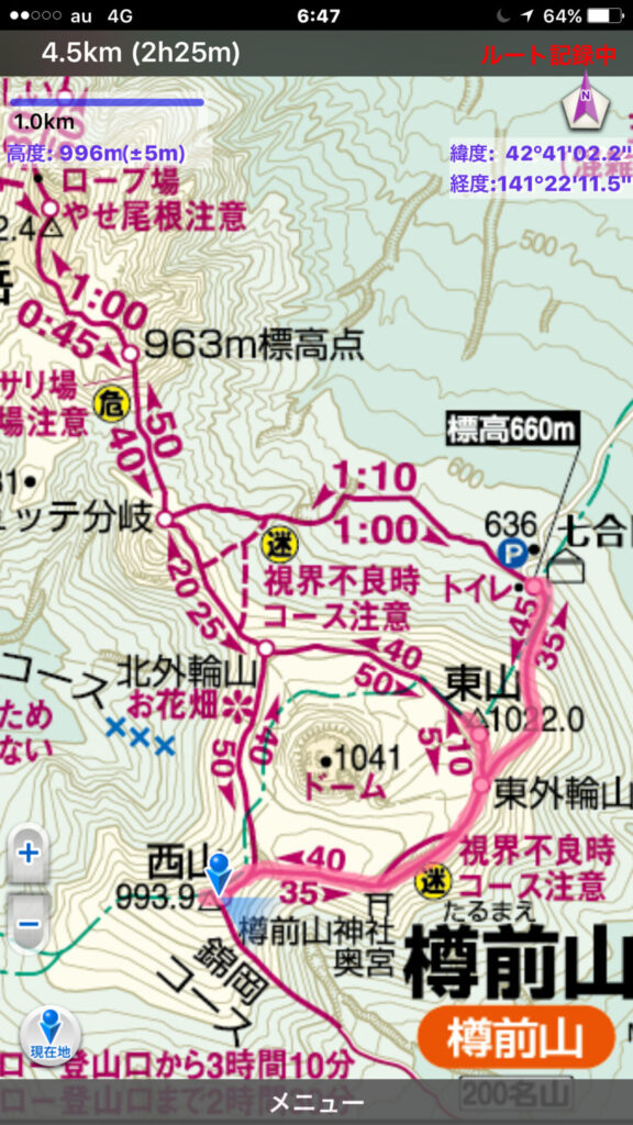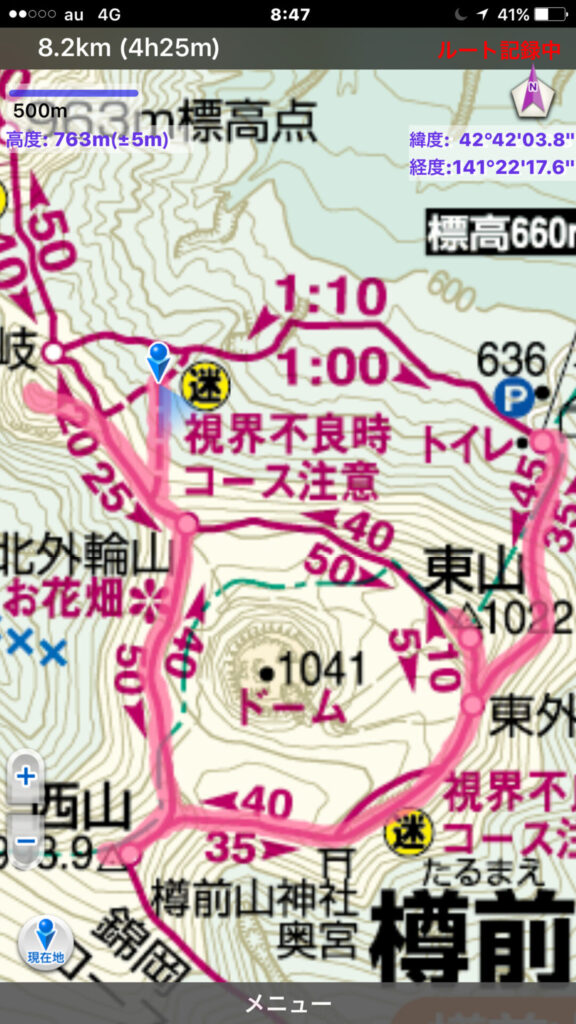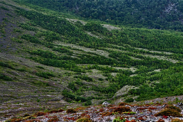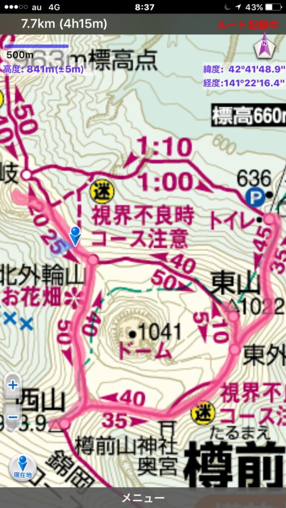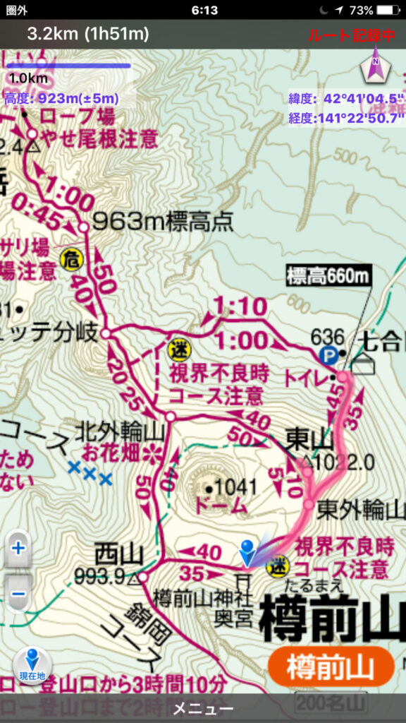 ▼よく見ると「苔の洞門方面立入禁止」とある。ここが、苔の洞門から至るシシャモナイコースの分岐部なのだろう。今は苔の洞門が崩れてたため立ち入り禁止となっている。小学4年生の時に勇払小学校の登山遠足でこのコースで登った。何度か爆竹を鳴らしていたのを記憶している。帰りは7合目から苫小牧市営バス。