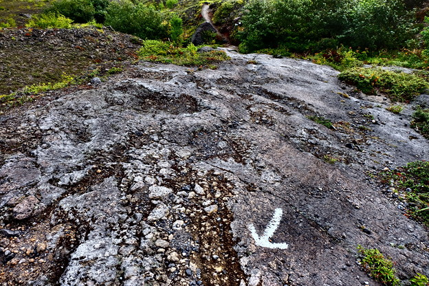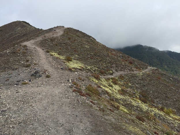 ▼霧が出ると、迷いそうだ。マーキングは相当数あり。