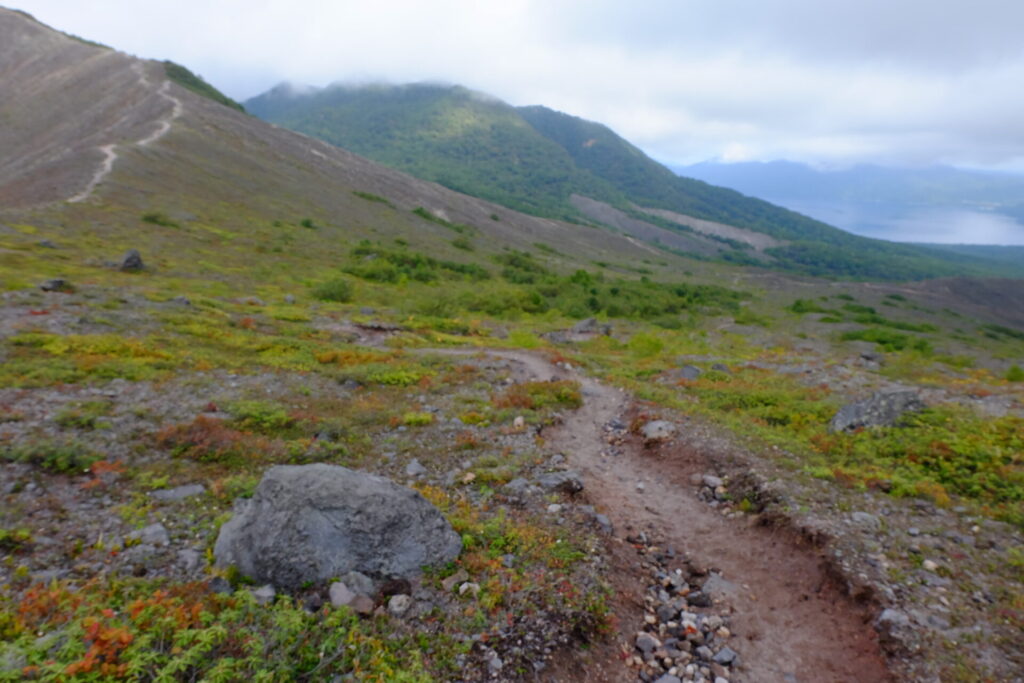 ロープが張ってあるが、まっすぐ進むと風不死岳へのコースに合流するのでは?踏み跡はクッキリだ!