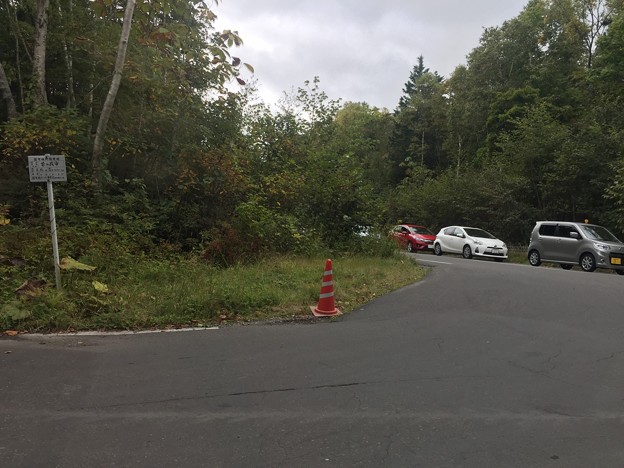 ▼道道沿いにも路駐あり。待てない人は、ここ5合目から歩く。