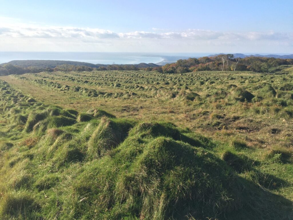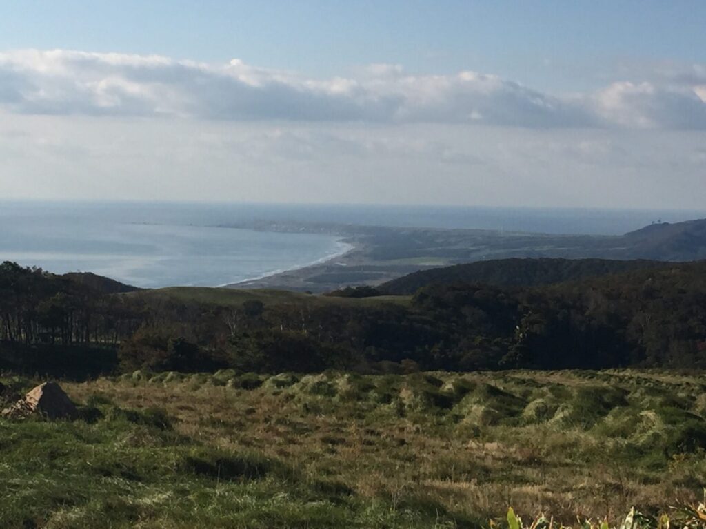 ▼「旧アフツ小休所」から襟裳岬まで見える。