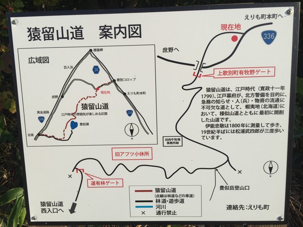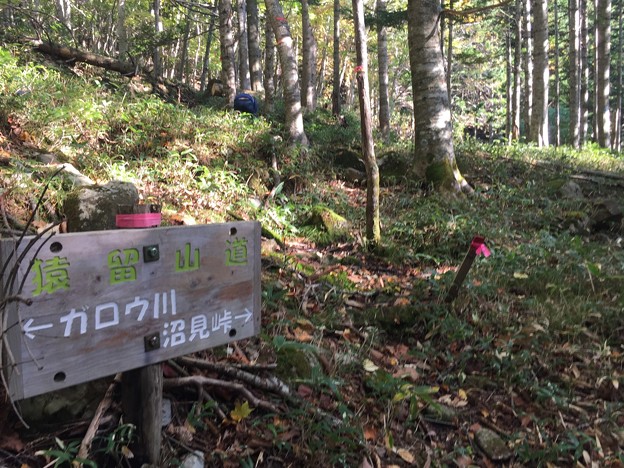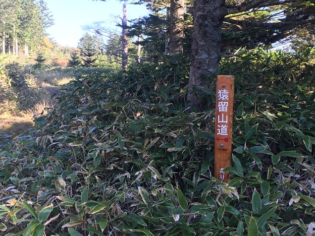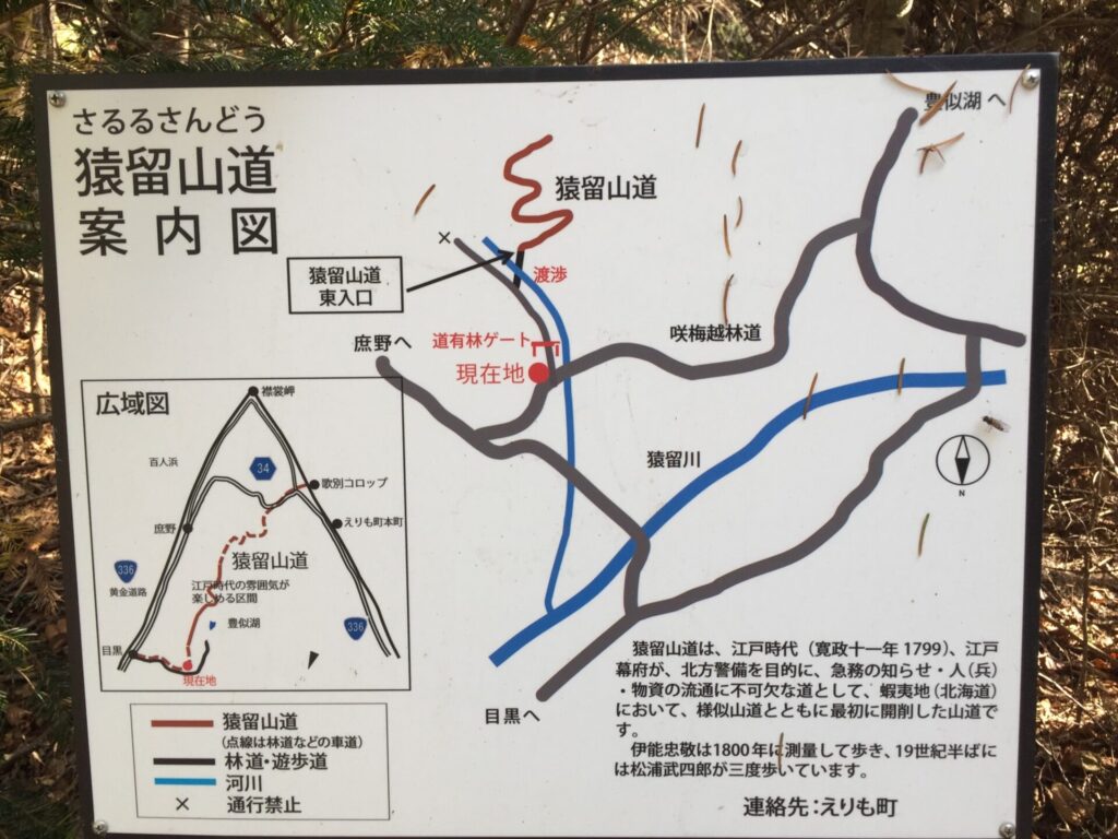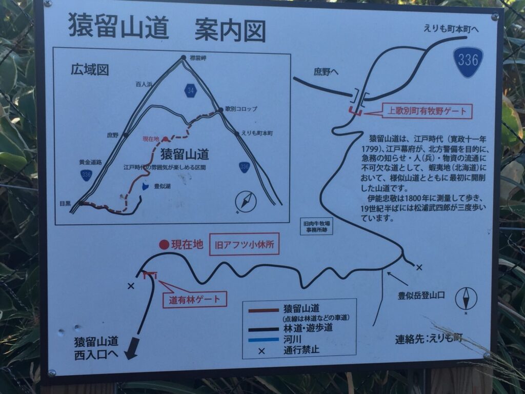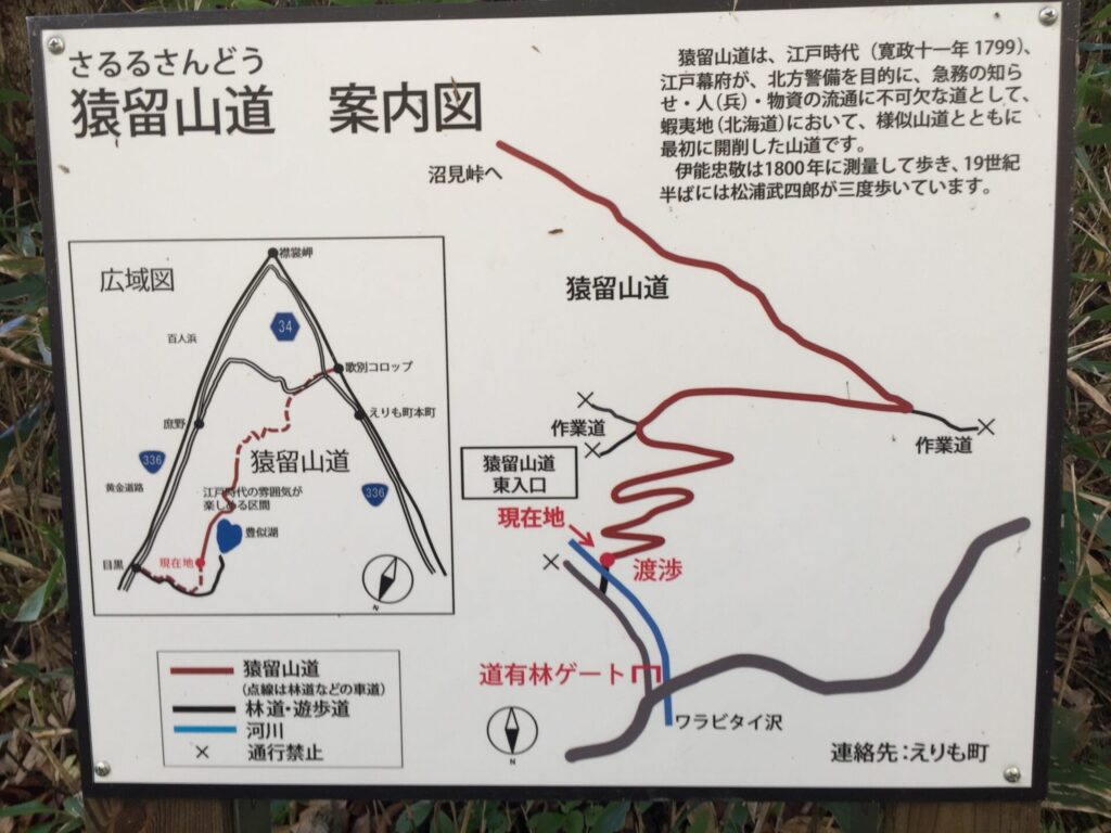 ▼突然、猿留山道の案内板が! なるほど、地図の人道が猿留山道だったのか。
