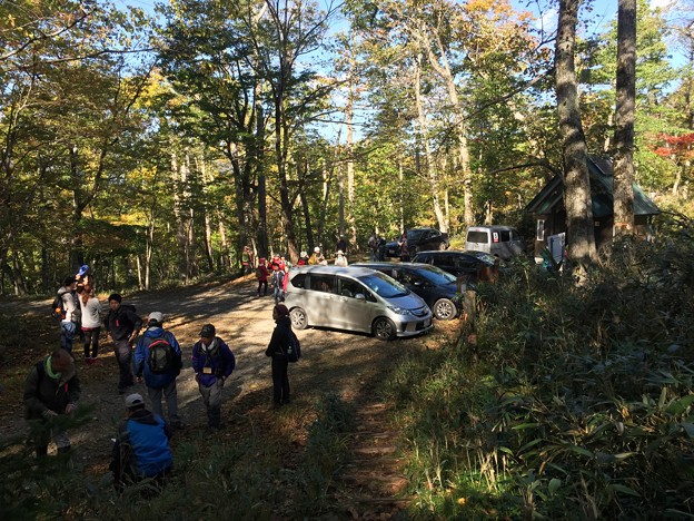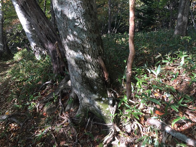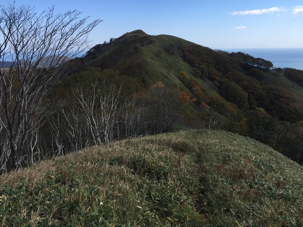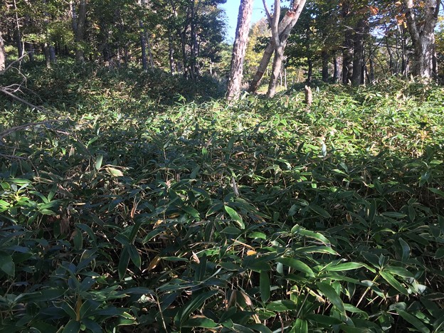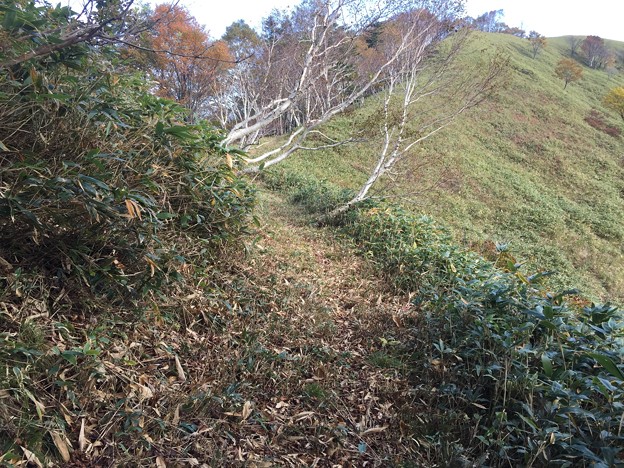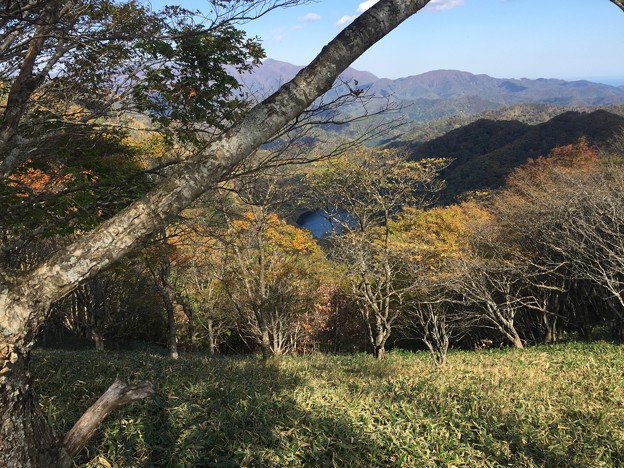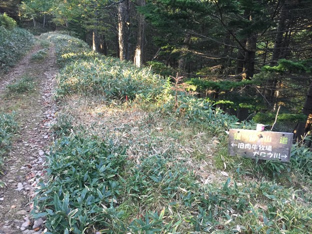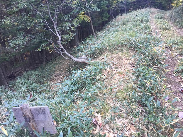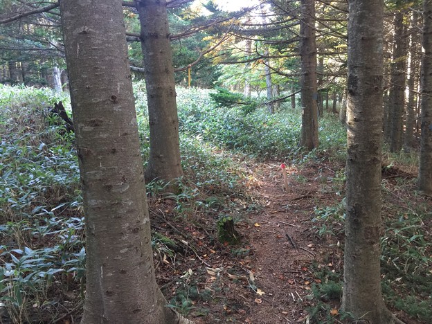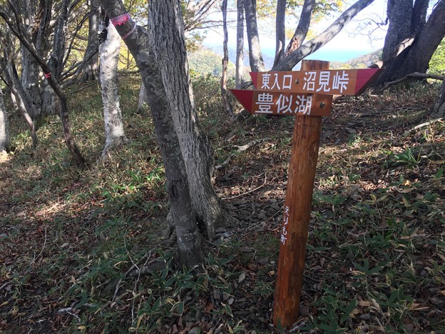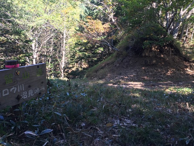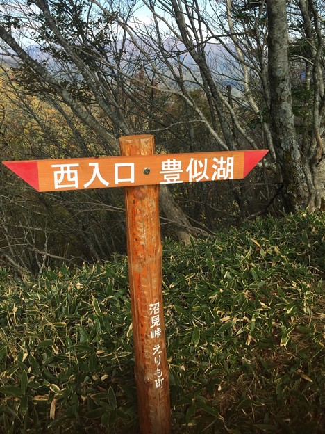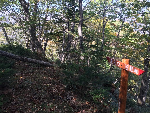 ▼下ると沼見峠。その向こうの頂上に行っても、樹木が邪魔で湖の全景は見えないだろう。