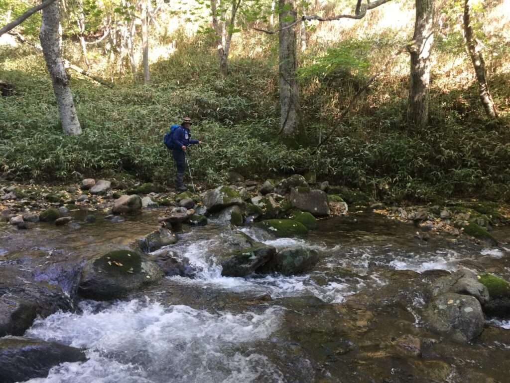 ▼ガロウ川渡渉。筋肉氏は、あっさりと完了!
