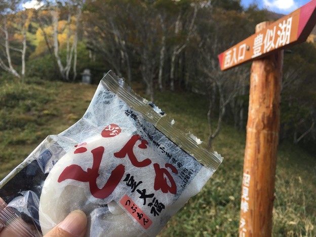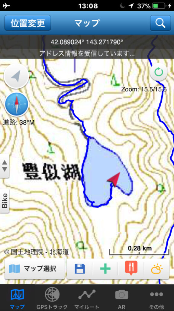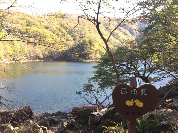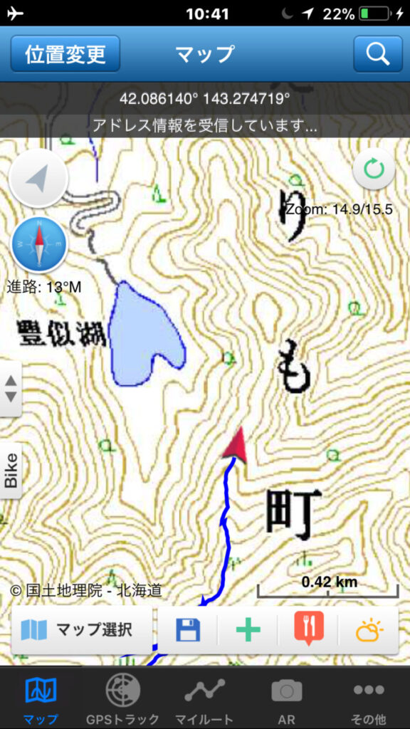 ▼豊似湖に降りられるようだ!近道だが、山道の完歩を目指して直進する。